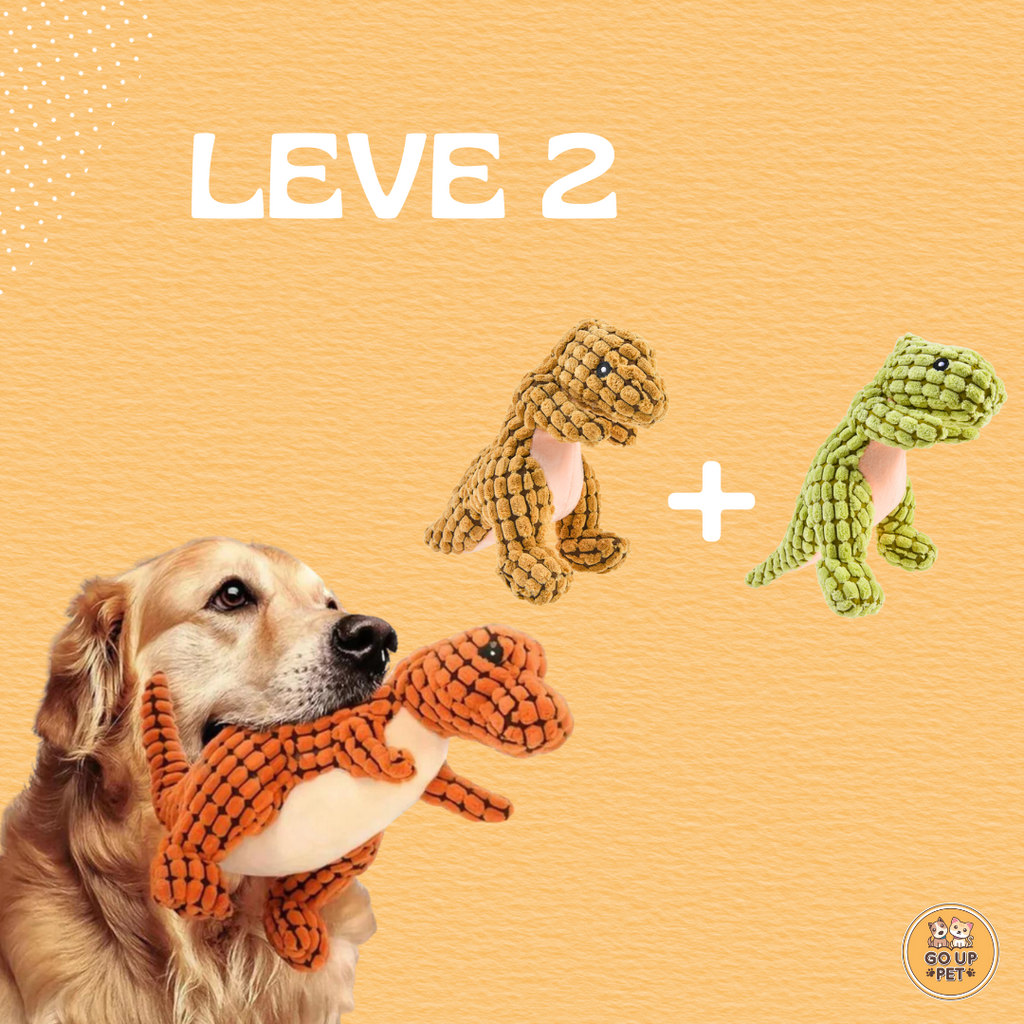MAIS DIVERSÃO - A alegria de cachorro é brincar! O Dinossauro Mastigável é uma pelúcia leve e divertida. É um brinquedo interativo que faz barulho ao apertar, com um squeaky, para chamar a atenção do cachorro.